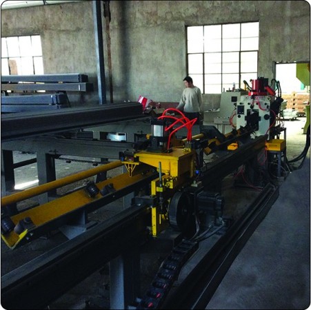 本生產(chǎn)線適用于電力、通訊、金具、立體車庫、電梯制造、空調(diào)制造等領(lǐng)域角鋼型材的打鋼印、制孔、切斷作業(yè),可通過更換模具來實現(xiàn)長圓孔、異型孔的一次性制孔成型。